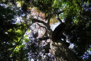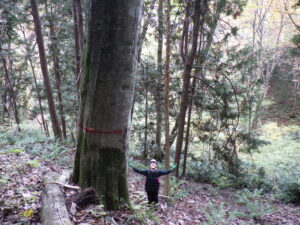 写真1-2.大滝沢試験地に出現したブナの巨木.当試験地は2023年の調査で設定から32年目を迎えた(2023年10月25日).