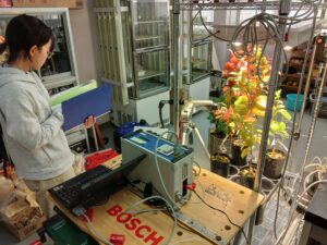 写真5-3.遮光試験に供されたヤブツバキの苗の光合成速度の測定(2024年12月23日).