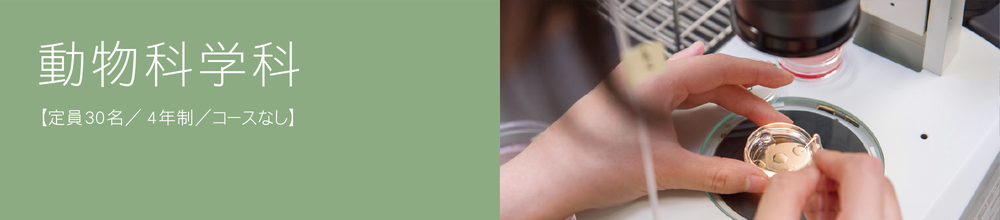 本学科では動物科学分野におけるグローバルな視点を持った技術者や地域社会のリーダーとして活躍できる専門職業人の育成を行います。