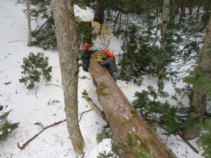 写真4-4.施業試験地における冬季伐採の様子(2021年2月19日).
